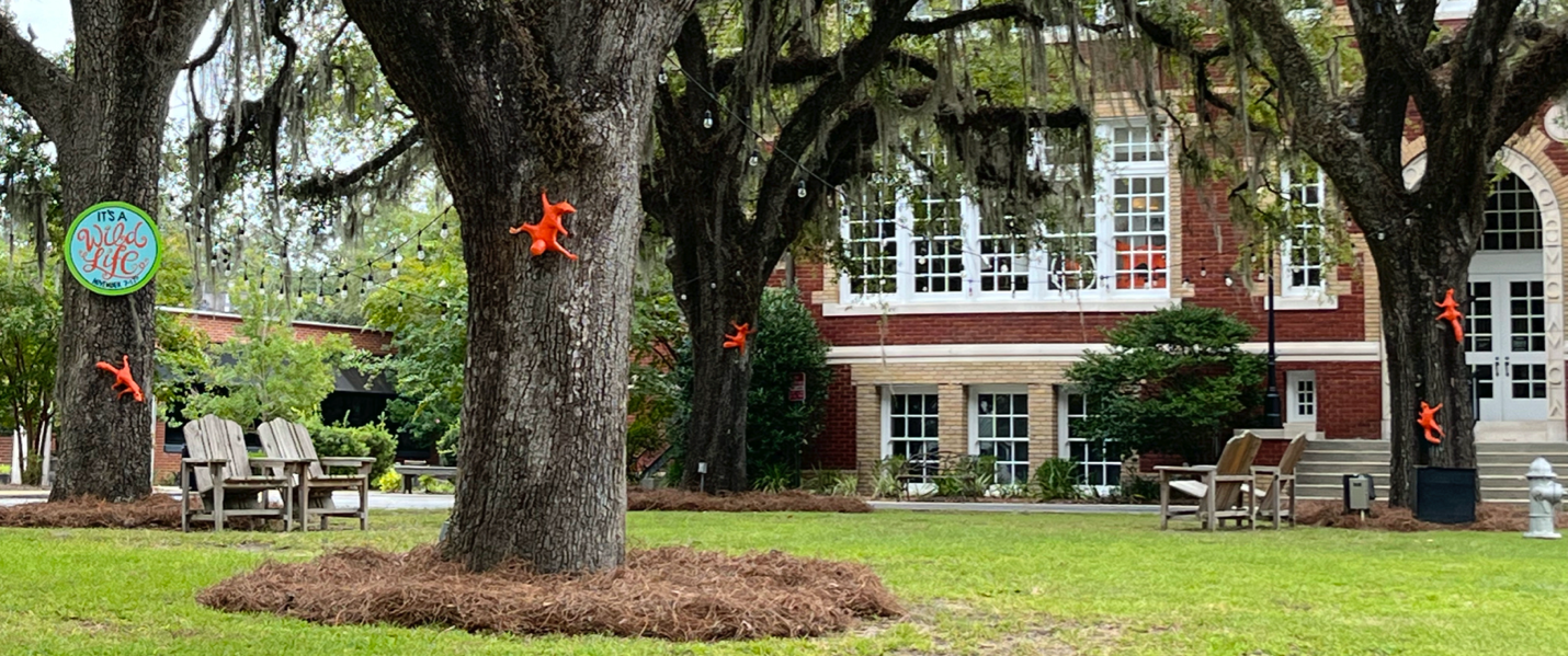 We went nuts for Wildlife Arts Festival! It’s a WILD LIFE! celebrated the Festival’s 29th year (November 7 – 17, 2024) with 29 paper mâché squirrels scattered throughout the community. These playful critters are scurrying about and gathering friends for all of the festivities ahead. We honor the squirrels’ role in shaping the plant composition of our forest and moving fungal spores to help newly planted longleaf pines gain important nutrients from the soil. This immersive experience is designed as a reminder of the importance of the stable grassland ecosystem of the longleaf pine — home to a rich variety of plants and animals.